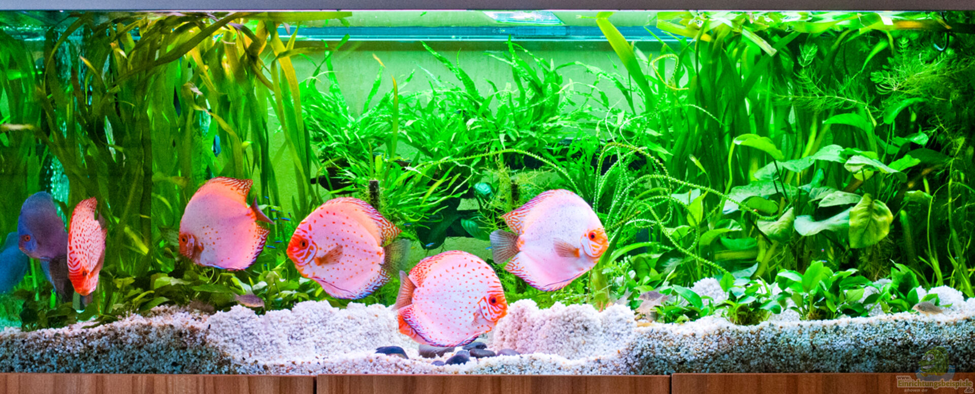 Mein Aquarium ist in einem stabilen Gleichgewicht. Die meisten Pflanzen sind langsam wachsend, da braucht man nicht viel zu tun. Die Vallisnereien werden etwas eingekürzt, sobald sie lang genug sind. Das Aquarium ist eine Sonderanfertigung, keine Bohrungen, so bin ich flexibler. Bodengrund, Filter und Wasser wurden von einem Aquarium übernommen, dass seit August 2010 lief.