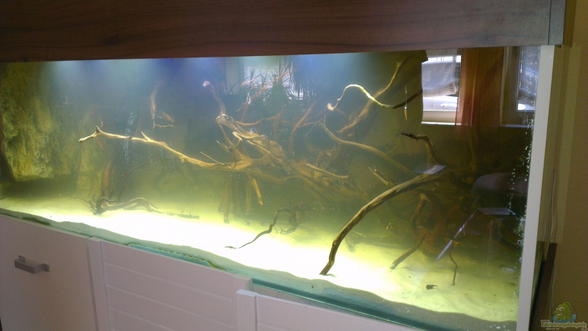Das Aquarium ist ein Garagenfund. Das Becken steht auf einem geschwei??ten Stahlrahmen. Da die Scheiben aber so sehr verkratzt waren, habe ich mich dazu entschieden die Frontscheibe gegen eine neue zu tauschen. Im Zuge dessen, wurden auch alle Innennähte erneuert. Nach anfänglichen Bedenken, hält es aber bis jetzt dicht :-)