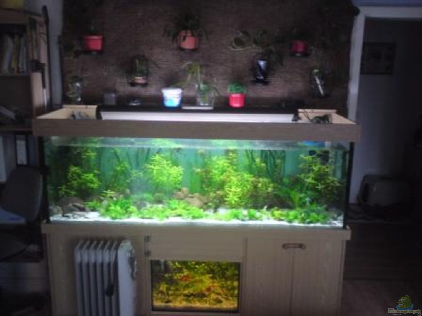 Ich fand über einen aquarienfreund jemanden, der ein gebrauchte Becken kombi loswerden wollte, zwar mit T8 leuchte aber mit unterschrank becken wo die fische meiner freundin auch platz haben. MIt gro??en Eheim 2228 und fu??bodenheizung dazu sowie anderen diversen kleinteilen.----Hochschleppen mussten es wir trotzdem selber---- Kleines unterbecken im schrank ca. 110 liter. Beide Becken sind abgedeckt mit 4mm Glasscheiben.
