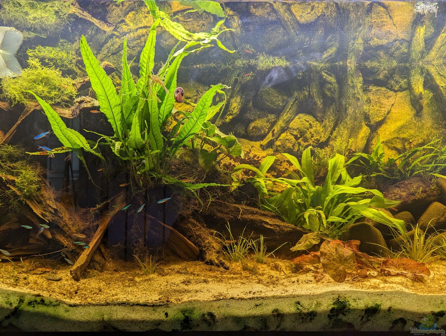 - Das Aquarium + Abddeckung habe ich bei Schreiber Aquaristik in Hannover erstanden. - Die Glasstärke beträgt 12mm. - 3D Aquariumrückwand -Amazonas- - Der Unterschrank in schwarz gehört zur Serie Juwel Rio 450