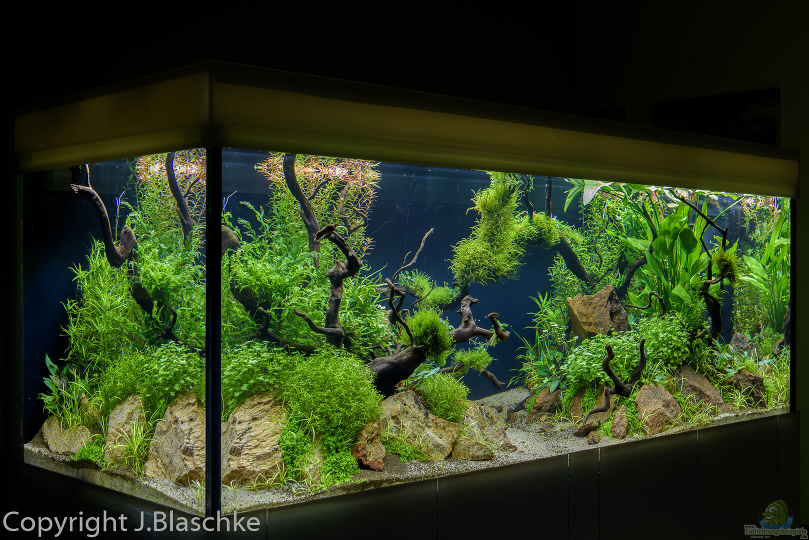 Sonderanfertigung der Firmen Aquariumbau Graf / Aquarium West München; Front- und Seitenscheiben in Wei??glas 15mm, Schwarzglasschacht hinten rechts (38 cm lang x 13 cm tief) mit - 4 Bohrungen für 2x Filterabläufe/-zuläufe, - 2 Bohrungen für Wasserüberlauf, Alu-Rahmen-Unterbau; Verkleidung des Unterbaus mit wei?? lackiertem Glas; Zeitgesteuerter Zulauf von Roh- und Osmosewasser (Durchlaufbecken),
