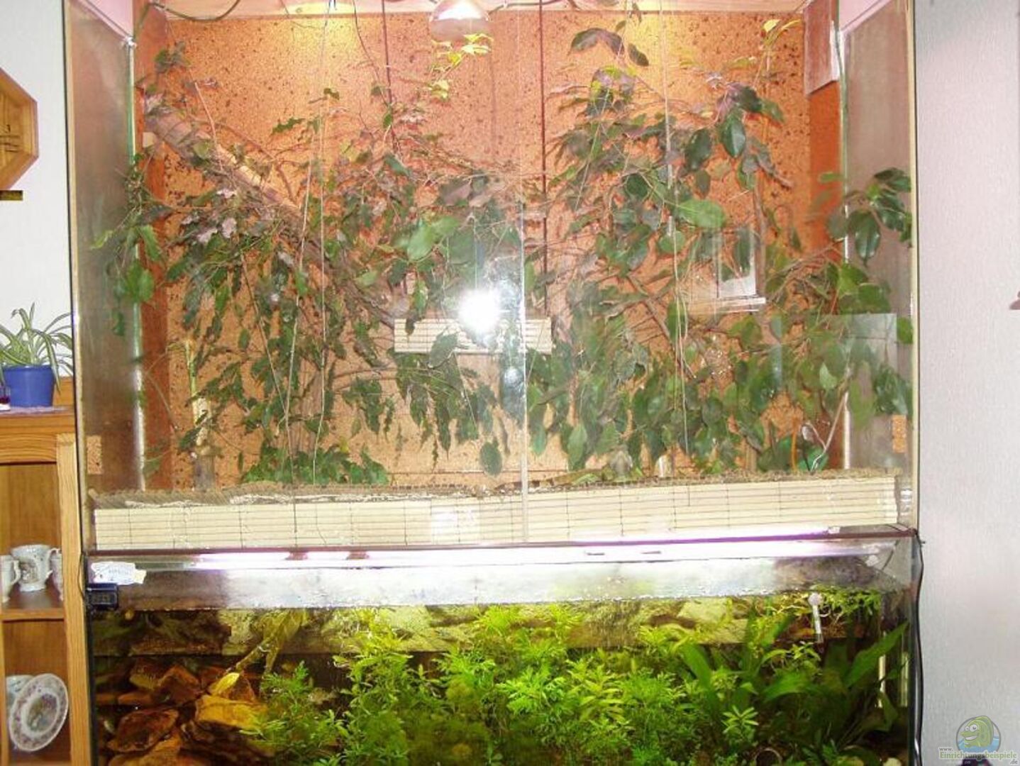 Palludarium im hinteren teil habe ich ein Landteil eingesetzt steht auf zwei Säulen und an der Rückwand verklebt