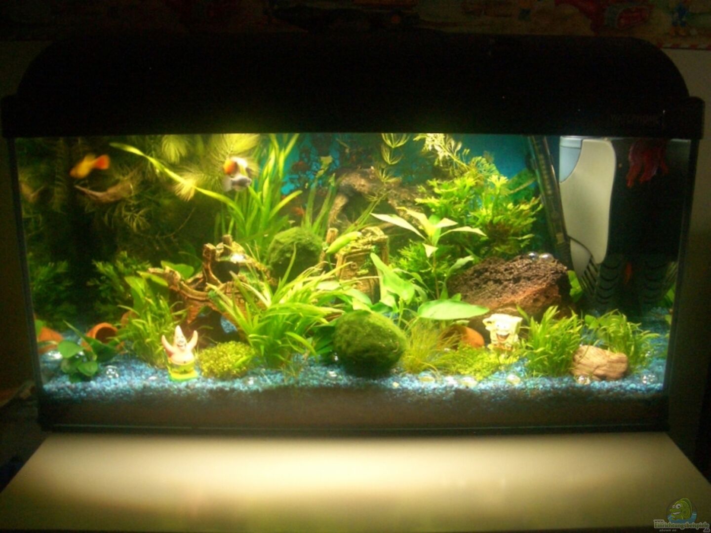 Für alle ´Aquaristikprofis´, denen wieder einmal der Kies zu blau (kitschig) und das Schiff Geschmackssache (kitschig) ist ... das Aquarium wurde für meinen Sohn eingerichtet. Mein Becken kann man sich unter 200L Gesellschaftsbecken ansehen ... - Die Fische fühlen sich alle wohl - Die Pflanzen entwickeln sich gut und das Becken bereitet mir auch keine weiteren Probleme (Algen etc.) im Gegensatz zu meinem 200L - Becken mit ´sündhaftteueren´ Komponenten ... Danke!