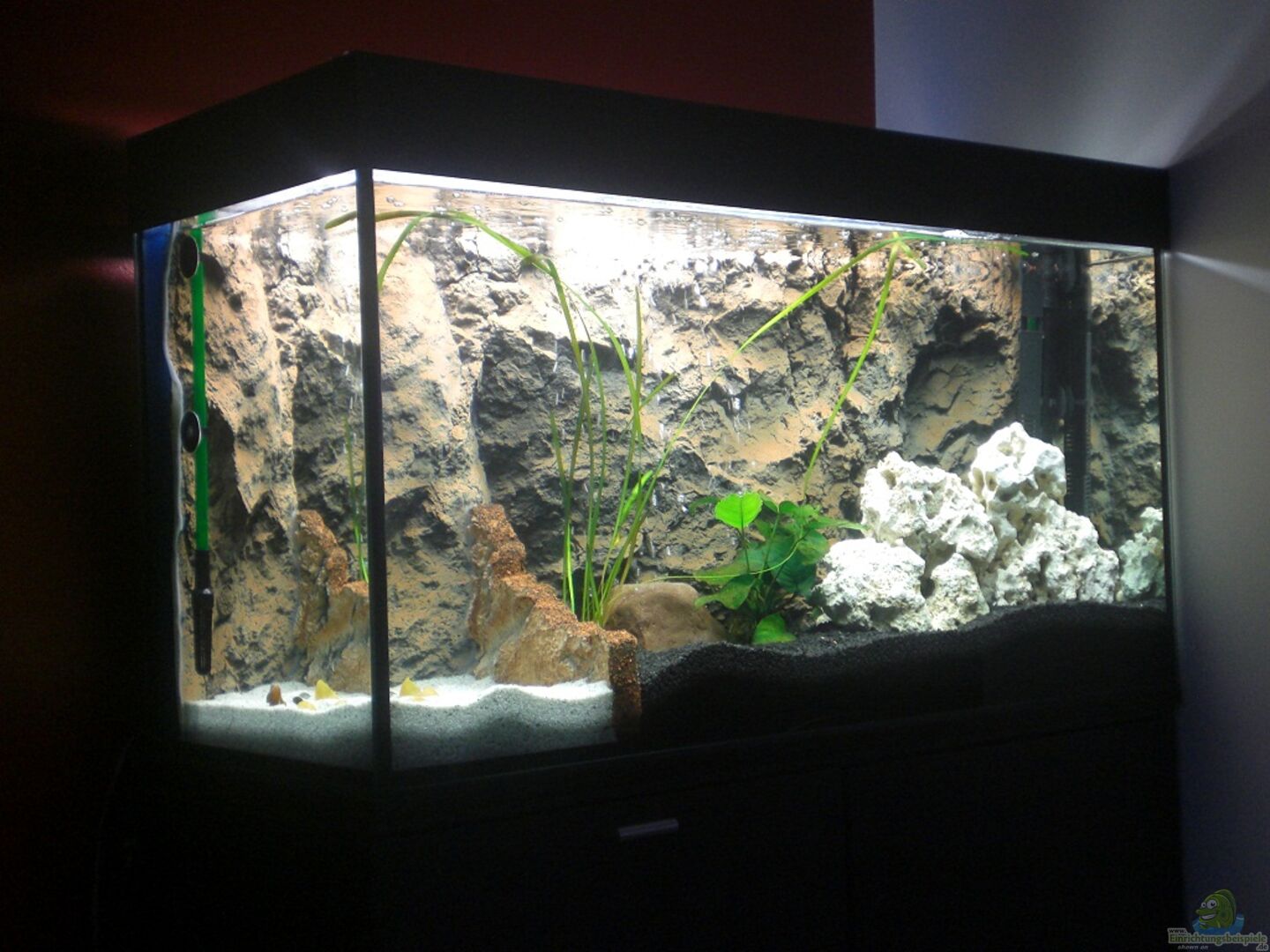 Hiner der Rückwand wurde in den Ecken Mattenfilter geklebt, sowie ach oben. In die Rückwand habe ich einige Löcher (3mm bohrer) gebohrt und hinten ebenfalls mit Mattenfilter verklebt. Um einen Wasseraustausch hinter der Rückwand zu gewährleisten, habe ich eine Teichpumpe installiert (so, da?? ich diese auch rausnehmen kann und ggf. hinten auch mal absaugen kann). Die Trennwand zwischen Sand und Kies habe ich selber gebastelt - mit dem Ergebnis bin ich selber nicht so zufrieden! Ich hätte [...]