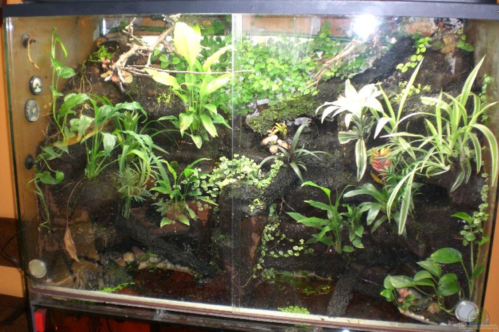 Ein Paludarium ist mein Regenwald im Wohnzimmer. 288 Liter Wasserteil (nicht fertig da Schneckenzucht) mit darüberliegendem Landteil.