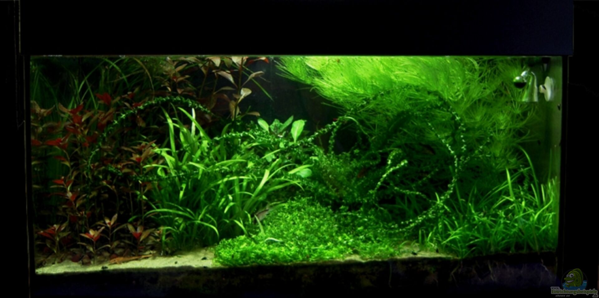 Das Aquarium steht in unserem Schlafzimmer, auf einem normalen Spanplattenmöbel, dass ich mit 27 mm Dreischichtplatten, 60x60 mm Kanthölzer und einem Stützkreuz verstärkt habe. War eigentlich als Provisorium gedacht, steht aber nun schon seit Oktober 2006 so da! Das Becken wird offen betrieben. Die Rückwand ist mit dunkelblauer Folie abgeklebt.