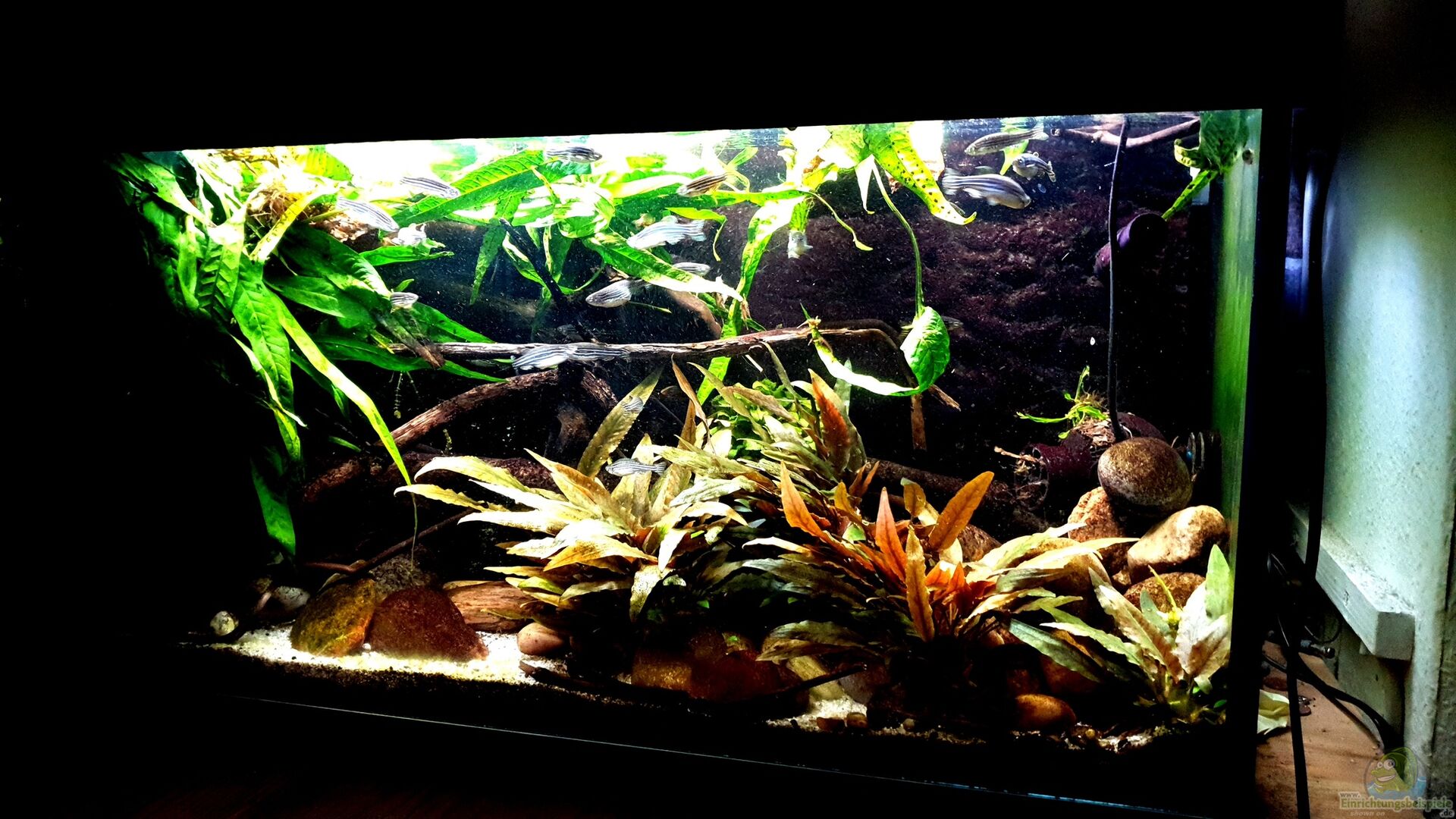 Bei dem Aquarium handelt es sich um eine Sonderanfertigung, welche ich günstig gebraucht über Ebay Kleinanzeigen erworben habe. Das Aquarium besitzt einen gro??en eingebauten Biofilter, welcher einiges der Grundfläche in Anspruch nimmt, dabei aber extrem wartungsfrei läuft. Auch der Standort ist relativ au??ergewöhnlich. Es steht nämlich direkt in einer Nische auf dem Esstisch aus Massivholz, passte dort optimal hin und macht sich wirklich gut! ;-)