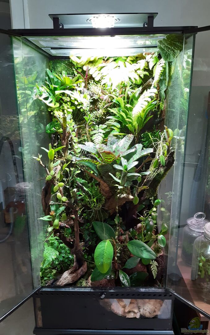 Die Rückwand besteht aus Xaximstückchen und Regenwaldsubstrat. Dies besteht aus einer Mischung aus Weisstorf und einem Kautschuk-Kleber