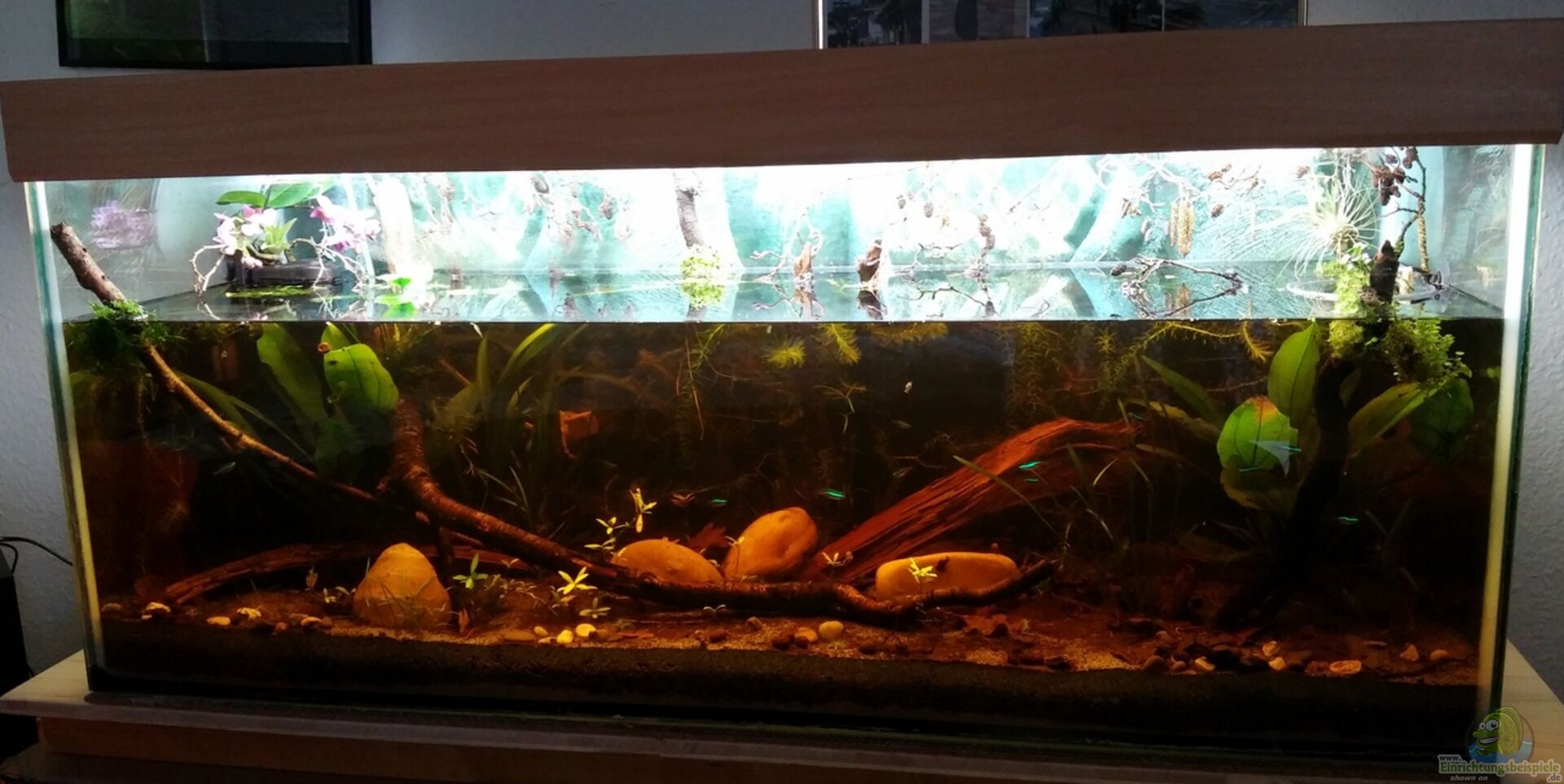 Da ich schon Armanogarnelen und Perlhunbärblingnachwuchs hatte, kam ein reines Amazonasbecken nicht in Frage, daher also ein Schwarzwasser- Gesellschaftsbecken im Amazonas-Stil. Pflanzen und Tiere entsprechen den geplanten Umweltbedingungen: mittlerer PH, mittelweiches Wasser, dunkle Färbung dew Wassers, leichte Ströhmung, Temperatur ca. 22 Grad. Die 3/4 Füllung des Becken erzeugt eine "ich schau in einen natürlichen Fluss"- Optik. So gibt es auch oberhalb des Wasserspiegels gestaltende [...]