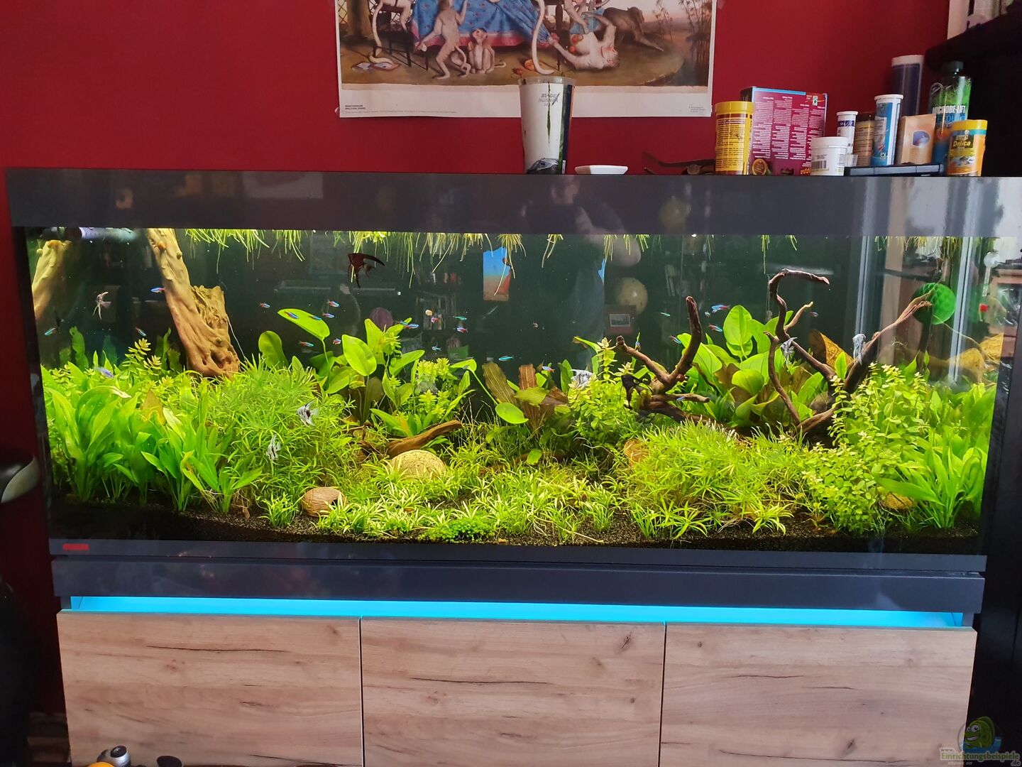 Das Becken besteht aus dem Eheim incpiria 530 LED Set. Der Ablauf ist im Boden integriert und führt in den Aussenfilter direkt im Schrank. Ich finde, eine geniale Lösung. Wenngleich es tricky war korrekt abzudichten :))