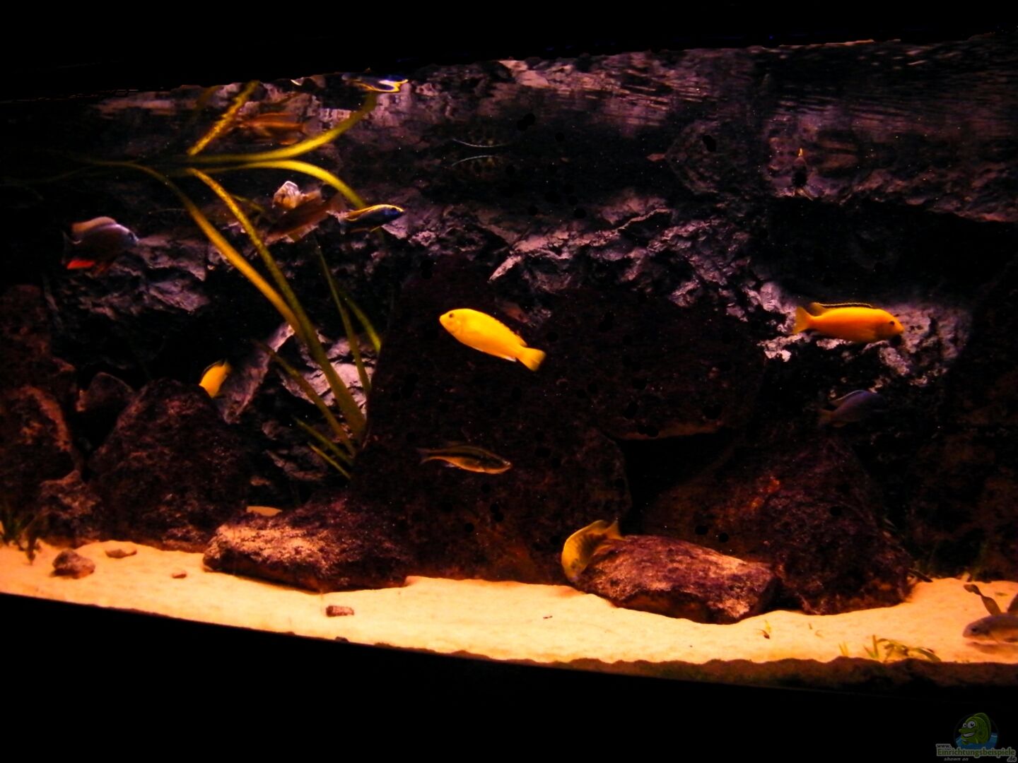 Felsübergangszone für Non- Mbunas 12mm Becken sto??verklebt, auf der Bodenplatte wurde eine weiter Glasscheibe mit 4mm eingebaut. Die Stärke der Bodenplatte zusammen beläuft sich somit auf 16 mm. Das Becken steht auf 3 selbst gemauerten Y-Tong Säulen, auf denen zwei Tischlerplatten aufgeklebt sind mit einer Gesamtstärke von ca. 6 cm. Als Ausgleich für Unebenheiten wurde darauf eine 2cm starke Styroporplatte verklebt. Rückwand und rechte Seitenscheibe wurde ebenfalls mit einer [...]
