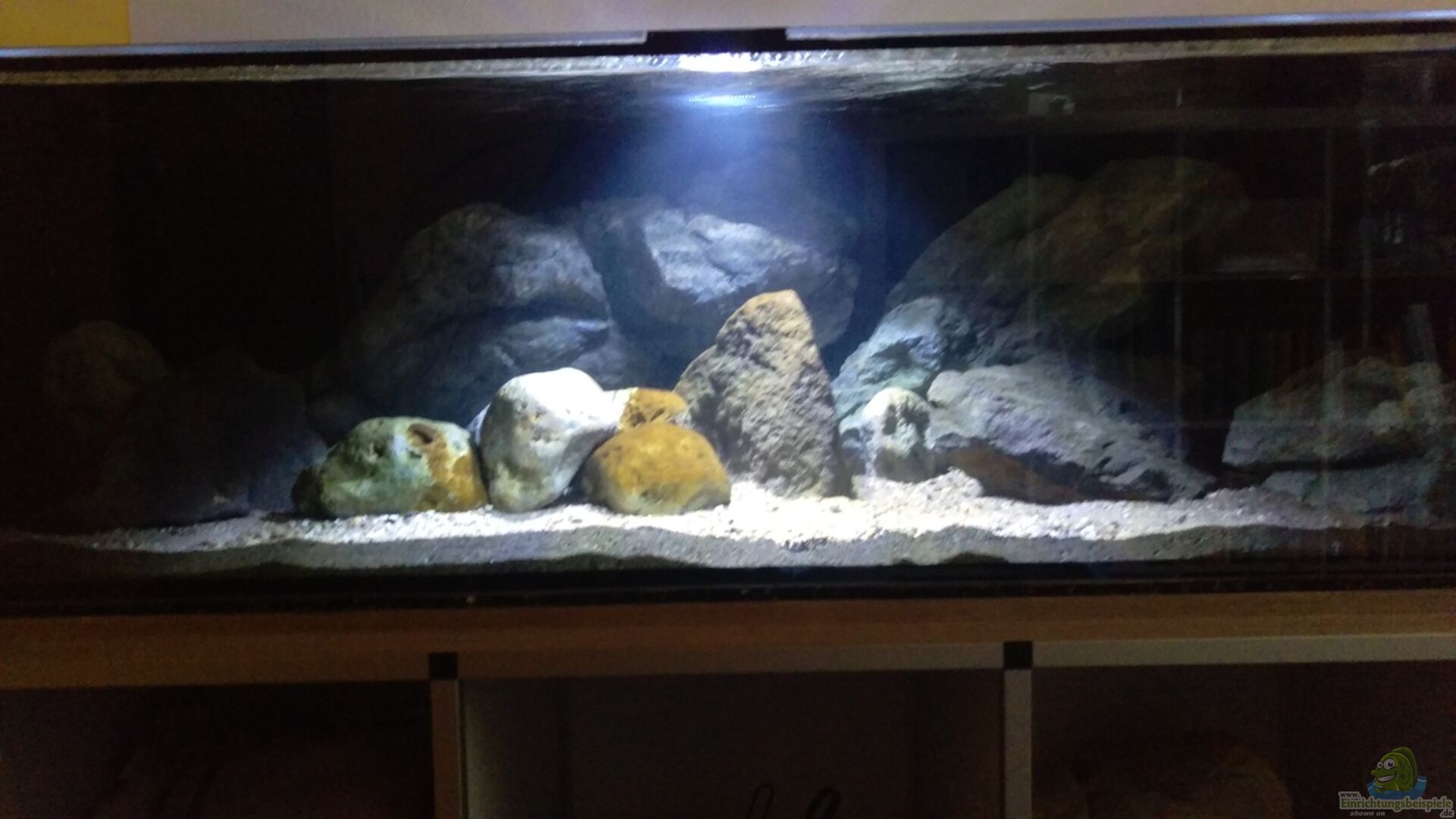 Das Becken wurde bei Aquarium Ennigerloh gefertigt. Die Glasstärke beträgt 10mm mit zwei längs- und einer Querstrebe. Die Seitenscheiben und die Rückscheibe wurde mit schwarzer Farbe gestrichen um einen Höhleneffekt zu ereichen. Als Unterschrank wurde ein Alugestell von Marine Systems in 160x60x70cm gewählt, dieser steht auf einer Siebdruckplatte um das Gewicht besser auf den Fussboden verteilen zu können. Zwischen Gestell und Becken liegt ebenfalls eine Siebdruckplatte. Eine Gummimatte [...]