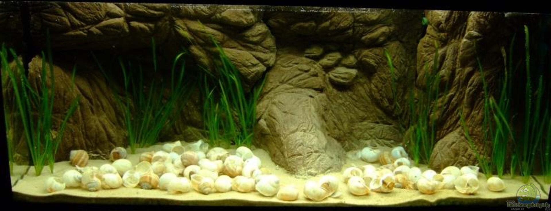 Selbstgebaute Felsrückwand aus Portlandzement bestehend aus drei Modulen, die ich mit brauner Abtönfarbe noch etwas abgedunkelt habe. Hinter dem Element ganz rechts versteckt sich der HMF. Das mittlere Element ist so gebaut, dass das Becken in zwei ungleich gro??e Reviere aufgeteilt wird.