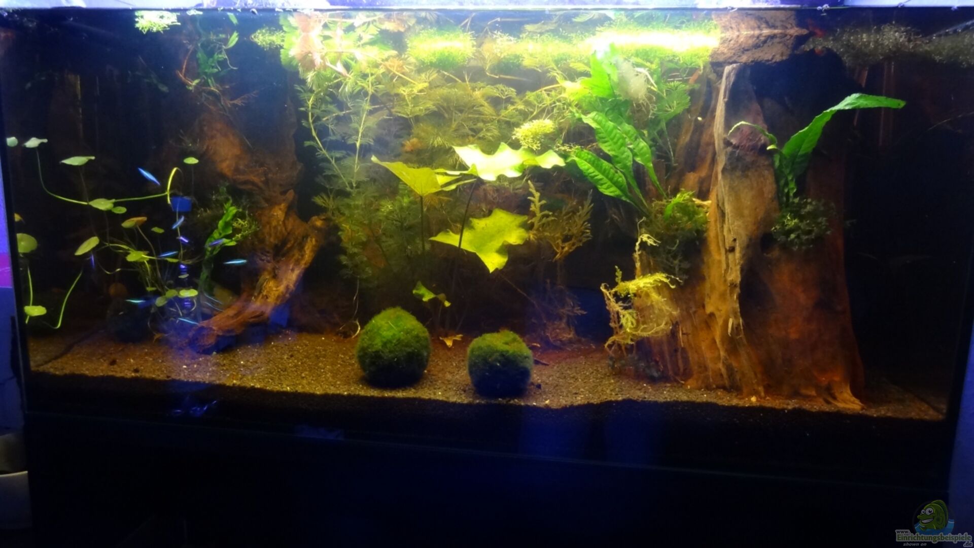 Der komplette Schrank ist von mir für dieses Aquarium massgefertigt. Er besteht aus 18mm starkem Multiplex Birke mit einer Lasur (Palisander) auf Wasserbasis. In dem über das Becken ragenden Vorsprung befindet sich eine rechteckige Aussparung auf der ein herausnehmbares Holzbrett liegt. Hier sind die RGB-LEDs angebracht. Im Fach unterhalb des Aquariums (hinter den Büchern) sind die Lichttechnik und der Filter untergebracht. Hierfür werden die Schläuche und Kabel durch Bohrungen [...]
