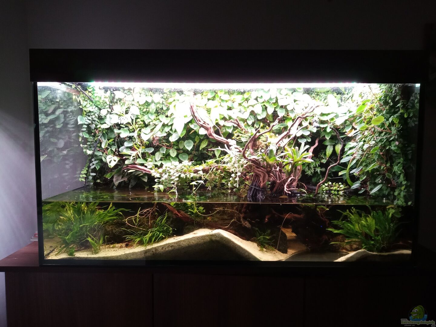 Die Besonderheit bei diesem Becken liegt an seinem relativ niedrigen Wasserstand von ca. 22 cm, aber einer doch recht grossen Grundfläche. Die Rückwand besteht aus mit Silikon verklebten Xaximplatten. Das Becken samt Rückwand gibt es schon länger, seit ca. 5 Jahren, und wurde bisher 2 mal umgestaltet. Das Becken hiess vorher Along the riverside. Das Problem war, dass der Wasserstand zu niedrig, und dass aufgrund des Landteils das Wasservolumen zu gering war. Auch war mir die Pumpenleistung, der [...]