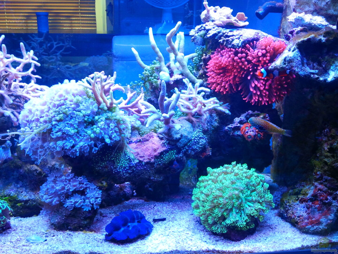 Mein Becken ist in meinen Augen ein offenes Einrichtungsbeispiel das nicht zu dicht mit Lebendgestein und Korallen zugebaut ist , aber trotzdem noch genug versteckmöglichkeiten für Fische und Garnelen bietet.