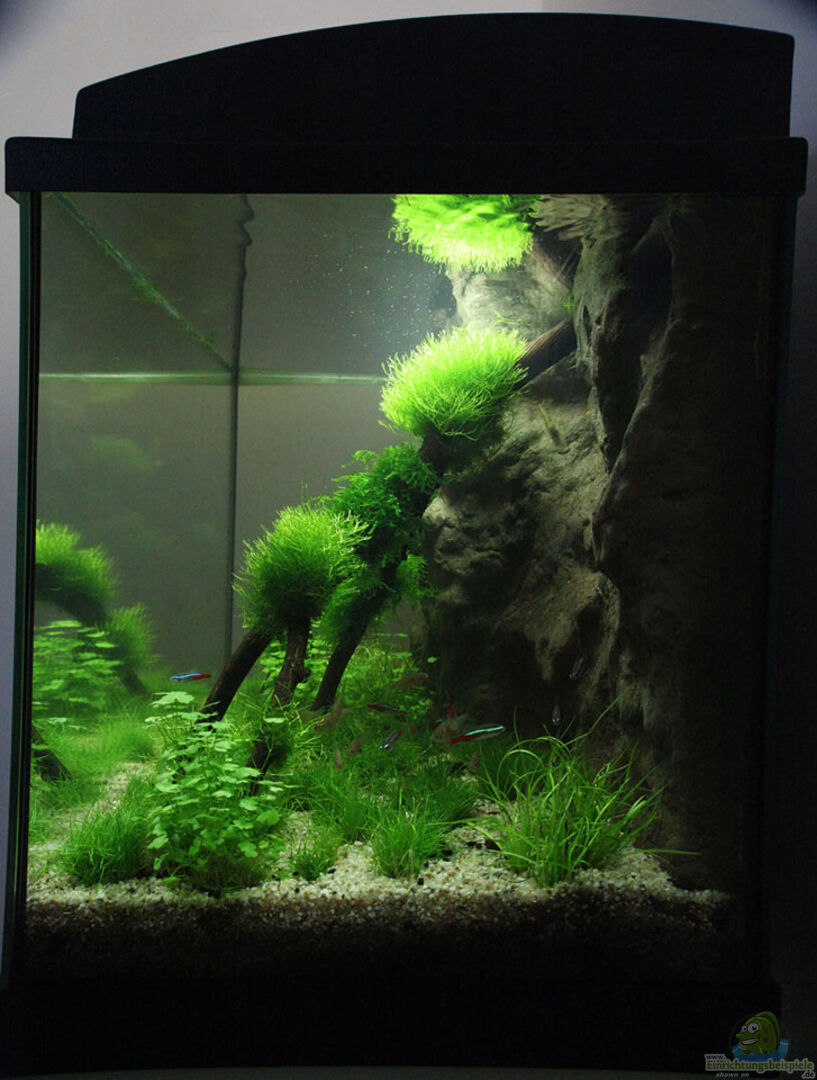 Eigenbaufilter: - HMF-Eigenbau, aus Acrylglas, Kunststoffprofilleisten, Filterschwamm 5cm, Kunststoffaquarienrohren. - Der Filter befindet sich innerhalb eines Gehäuses aus Acrylglas und kann mit diesem bei Bedarf komplett aus dem Aquarium entfernt werden. Im Gehäuse finden auch die Pumpe sowie Heizstab und Thermometer Platz, wodurch keinerlei Technik sichtbar ist. - Minimale Geräuschentwicklung durch Umwicklung von Pumpe und Austrittsrohr mit Schaumstoff und Gummiringen. (praktisch komplette [...]
