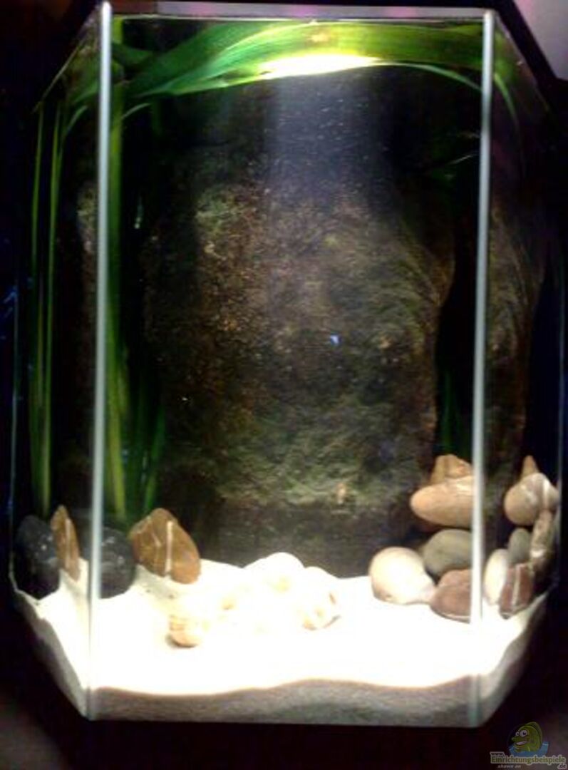 °°~~ °° Hierbei handelt es sich um ein Sechseck - Becken... °°~~°° °°~~°° Ohne die Deko °°~~°° den ´kleinen´ Felsen °°~~°° Sand °°°~~°° und die Steinaufbauten, fasst es 89 Liter °°~~°° jedoch braucht der Granit-Felsen ziemlich Platz und deshalb pendelt es sich bei ca. 70 Liter ein... °°~~°° Die Gestaltung erwies sich schwieriger als ich gedacht habe °°~~°° jedoch bin ich jetzt mit dem Ergebnis sehr zufrieden °°~~°° °°~~°° Das Becken befindet [...]