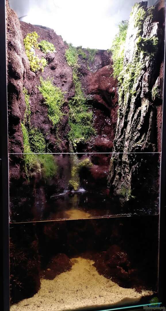 Es handelt sich um ein Standart 60cm-Becken, welches allerdings hochkant steht und vorne mit 2 30x30 cm Glasscheiben nachgerüstet wurde (unten verklebt, obere Scheibe als "Falltür"). Bei der ehemaligen Seitenscheibe, jetzt oben, wurden die Silikonnähte aufgetrennt; die Scheibe liegt jetzt lose auf.