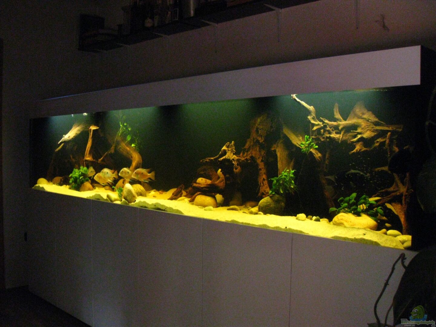 Nettoinhalt : 1200 L , 12 mm Glas, Bodenscheibe 2-teilig, Nähte am Boden mit Glasstreben verstärkt, Am oberen Beckenrand zusätzlich Glasstreben über die gesamte Beckenlänge. 2 breite Mittelstreben. Rückwand, Seitenscheiben + zwei 4-Kammer-Innenfilter vom Hersteller schwarz foliert. Dies erspart aufwändige Rückwandeinbauten u. ergibt eine brauchbare Tiefenwirkung. Hinten li./re. über der Wasseroberfläche je eine 40 mm - Bohrung, zum durchführen v. Kabeln. Die Führungsschienen [...]