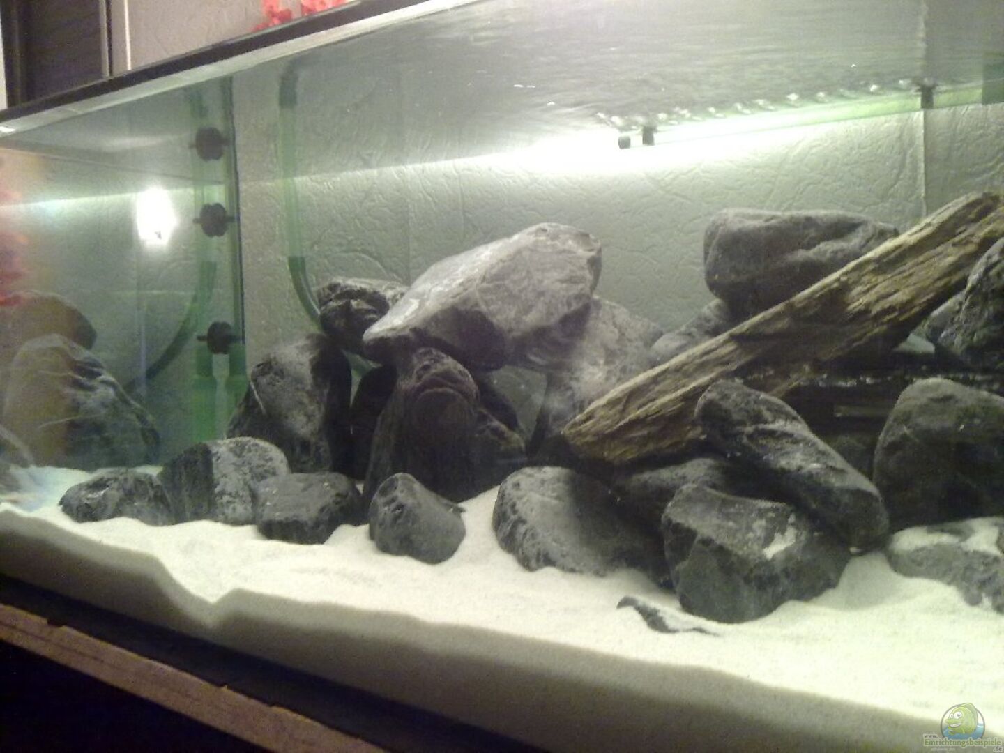 schön tiefes Becken 8mm Glas; sto??verklebt mit Sicherheitsnaht Abdeckung durch Glasplatten wodurch ich finde das die ganze Tiefe des Beckens zur Geltung kommt und man die Tiere auch mal von oben beobachten kann 1 x Styroporplatte zum Schutz der Bodenplatte 2cm stark 1 x Acrylplatte 6mm zum Schutz der Bodenplatte 1 x Lage Antirutschmatten aus Gummi um Unebenheiten auszugleichen Rückwand besteht momentan leider nur aus einer Fotofolie die den Marmor wiederspiegelt Wird [...]