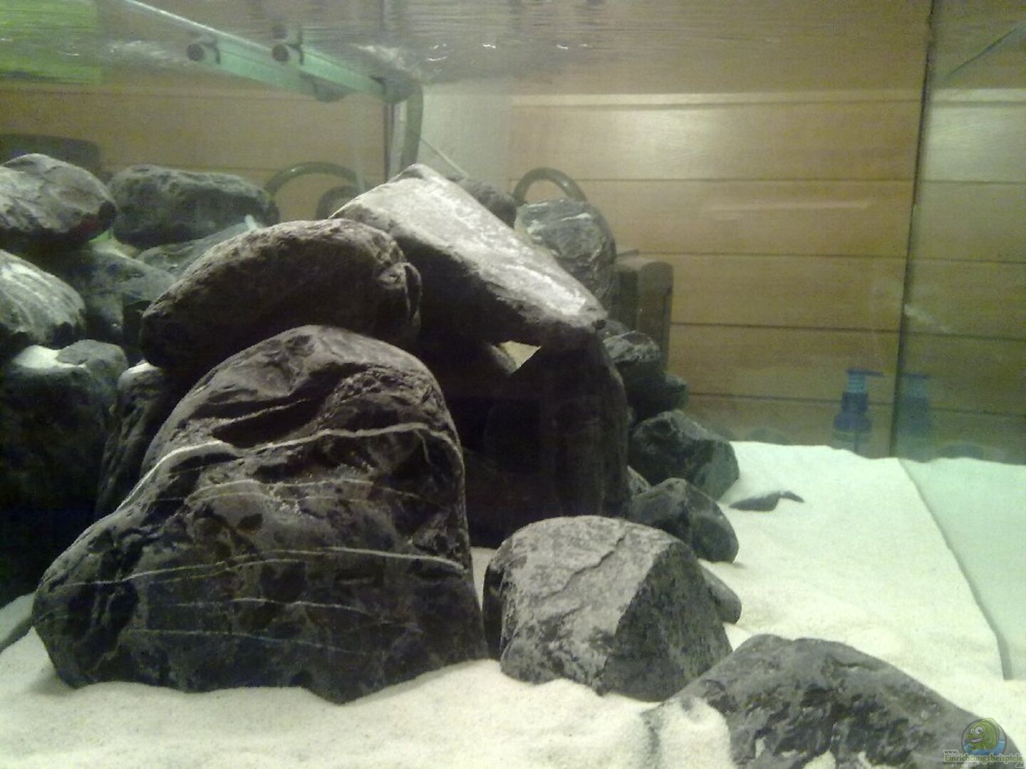 schön tiefes Becken 8mm Glas; sto??verklebt mit Sicherheitsnaht Abdeckung durch Glasplatten wodurch ich finde das die ganze Tiefe des Beckens zur Geltung kommt und man die Tiere auch mal von oben beobachten kann 1 x Styroporplatte zum Schutz der Bodenplatte 2cm stark 1 x Acrylplatte 6mm zum Schutz der Bodenplatte 1 x Lage Antirutschmatten aus Gummi um Unebenheiten auszugleichen Rückwand besteht momentan leider nur aus einer Fotofolie die den Marmor wiederspiegelt Wird [...]
