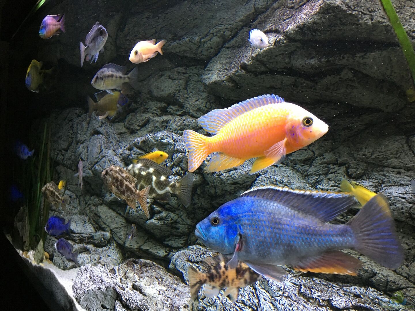 Hier findest du traumhaft schön eingerichtete Aquarien, die mit Fischen der Gattung Astatotilapia besetzt sind, die ursprünglich aus Ostafrika stammen.