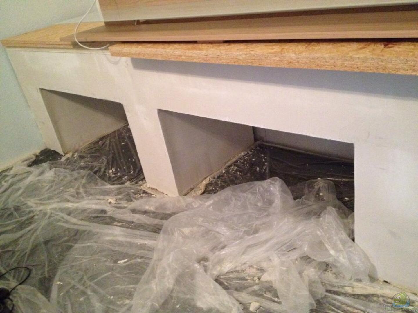 Das Becken ist eine vor Ort Verklebung der Firma Aquariumbau Ennigerloh. Die Abdeckung ist eine Sonderanfertigung von Herrn Runge komplett in Silber. aquarienabdeckungen.com 4 Bohrungen im Becken davon 2 im Filterschacht 1x für den Ablauf ins Filterbecken, 1x ein Notüberlauf ins Abwasser. Die beiden weiteren Bohrungen sind "im" Aquarium einmal ca. 10cm neben dem Filterschacht links für den Wasserwechsel, sowie 15cm vor der rechten Seite für den Rücklauf aus dem Aquarium.
