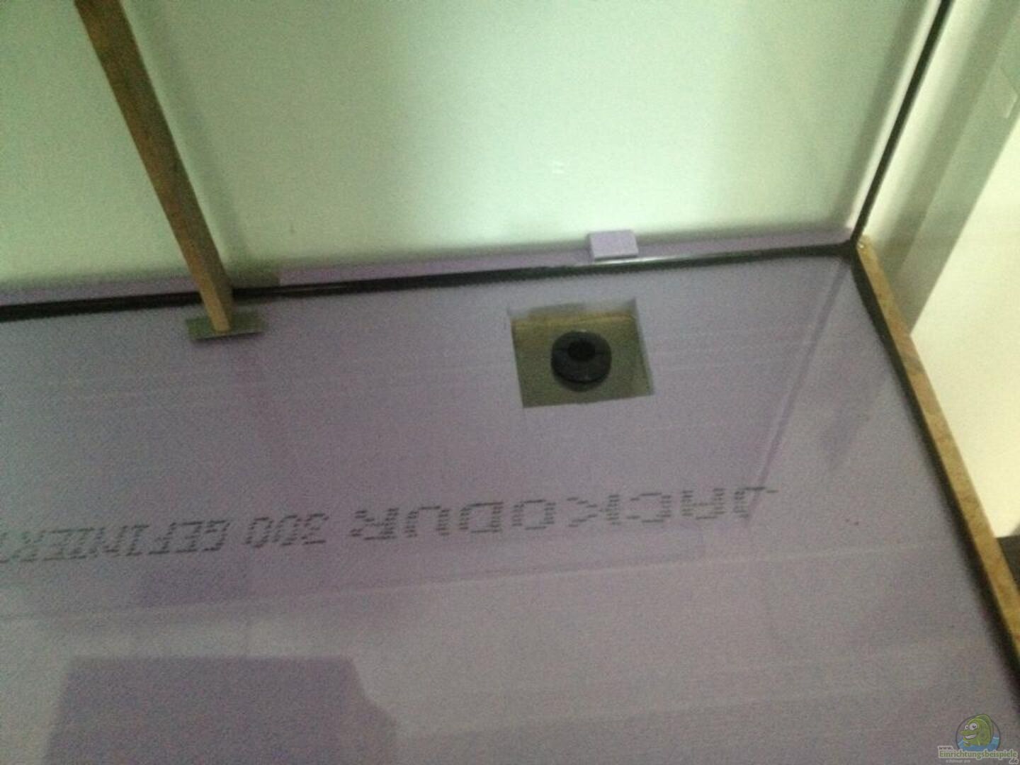 Das Becken ist eine vor Ort Verklebung der Firma Aquariumbau Ennigerloh. Die Abdeckung ist eine Sonderanfertigung von Herrn Runge komplett in Silber. aquarienabdeckungen.com 4 Bohrungen im Becken davon 2 im Filterschacht 1x für den Ablauf ins Filterbecken, 1x ein Notüberlauf ins Abwasser. Die beiden weiteren Bohrungen sind "im" Aquarium einmal ca. 10cm neben dem Filterschacht links für den Wasserwechsel, sowie 15cm vor der rechten Seite für den Rücklauf aus dem Aquarium.