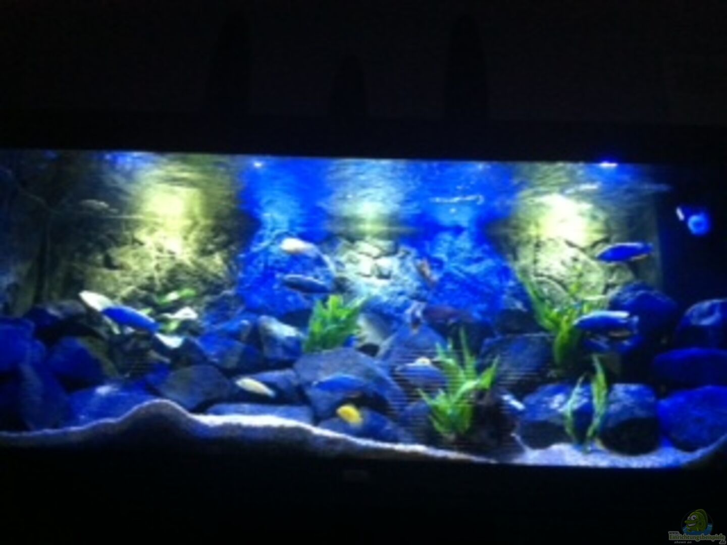Hier findest Du traumhaft schöne Aquarien, die mit Buntbarschen der Art Champsochromis caeruleus (Forellenbuntbarsch) aus dem Malawisee besetzt sind.