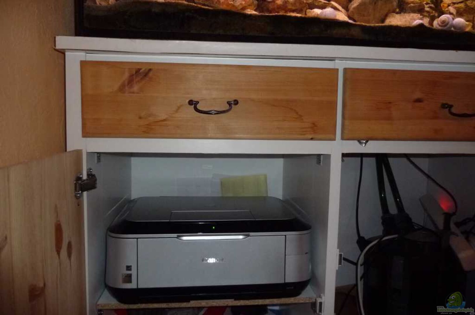 Sonderanfertigung wulstverklebt Abdeckung und Unterschrank selbstgebaut aus Spanplatten und Kieferplatten.