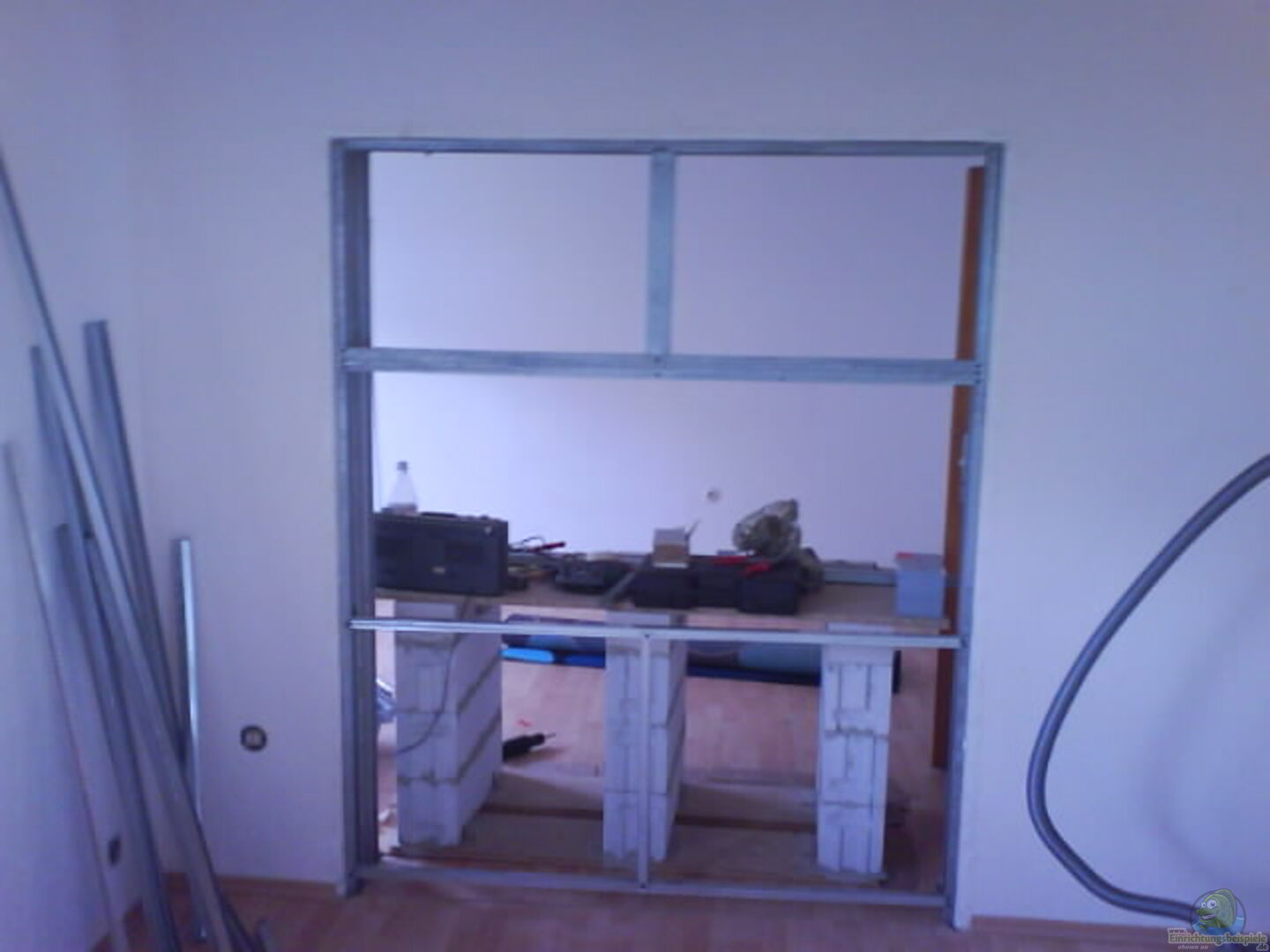 ~-~Naja wie man sieht habe ich das Aquarium in die wand (wandbündig mit wohnzimmerwand) gebaut~-~ ~-~Von Anfang bis Ende genau in den Bildern festgehalten~-~ ~-~Das Gestell besteht aus Ytongsteinen mit 3 Säulen daruber eine 3 cm starke MDF Platte~-~