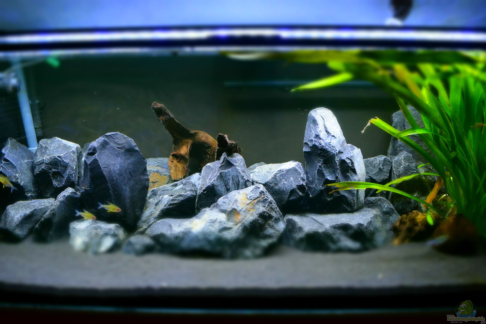 Das Becken ist noch in der Entstehungsphase und beinhaltet noch keine Malawis. ??ber Tipps und Anregungen wäre ich sehr erfreut, da sich mir noch einige Fragen in den unten aufgelisteten Punkten stellen. Es wurde aus Platzgründen auf eine 3D Rückwand verzichtet und stattdessen die Rückscheibe mit schwarzer Abtönfarbe gestrichen, was meiner Meinung nach eine extrem gute Tiefenwirkung erzeugt.