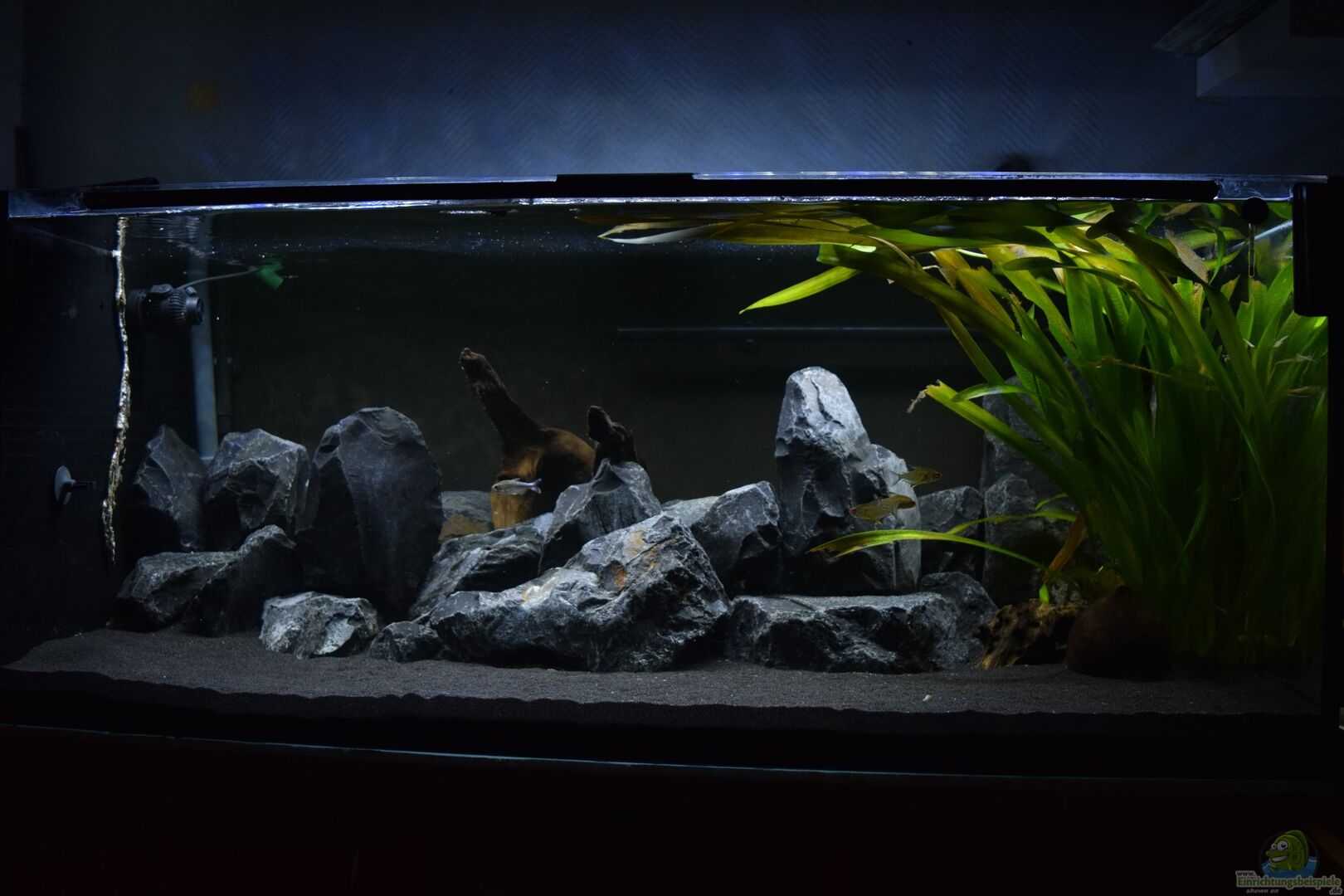 Das Becken ist noch in der Entstehungsphase und beinhaltet noch keine Malawis. ??ber Tipps und Anregungen wäre ich sehr erfreut, da sich mir noch einige Fragen in den unten aufgelisteten Punkten stellen. Es wurde aus Platzgründen auf eine 3D Rückwand verzichtet und stattdessen die Rückscheibe mit schwarzer Abtönfarbe gestrichen, was meiner Meinung nach eine extrem gute Tiefenwirkung erzeugt.