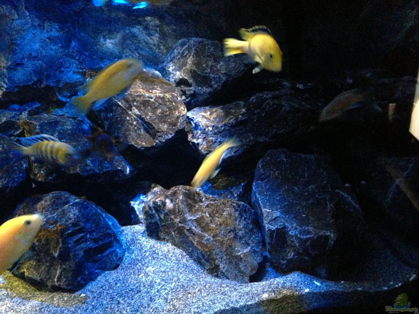 Hier findest Du traumhaft schöne Aquarien, die mit Buntbarschen der Art Champsochromis caeruleus (Forellenbuntbarsch) aus dem Malawisee besetzt sind.