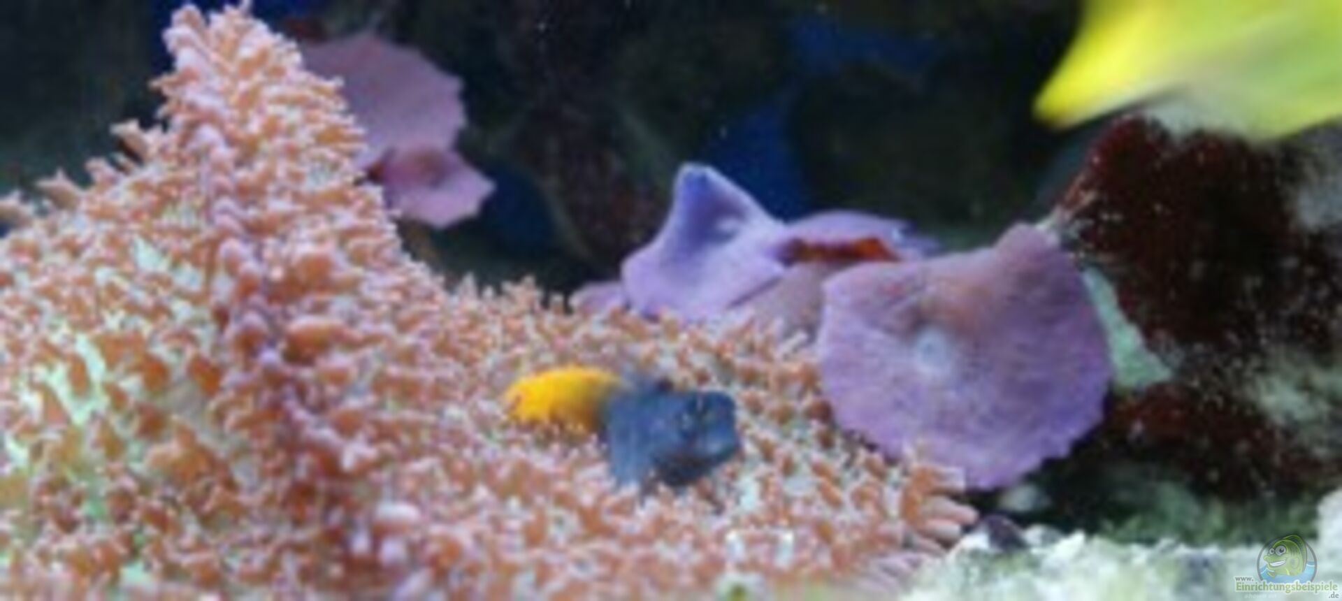 Das Becken wurde am 25.10.2010 neu eingerichtet und der Bestatz an Fischen Steinen und Korallen aus meinen vorherigen 2 Becken übernommen Zum Becken gehört noch ein 160 l Filterbecken mit 3 Kammern. In einer Kammer ist Lebendgestein und Caulerpa, in der 2. Kammer ist die Filtertechnik und die 3.Kammer dient zur Niveauregulierung