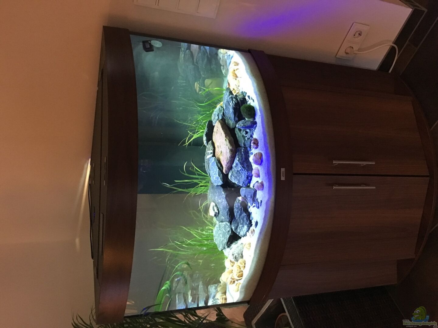 Es handelt sich um ein Trigon 190 von Juwel. Dieses sollte urprünglich in eine bestimmte Raumecke, leider war mir dann bei aufgebautem Unterschrank die Angelegenheit zu schief und zu wackelig. Daraufhin haben wir es an einer anderen Stelle platziert und eine der "geraden" Seite ebenfall frei/offen gelassen. So haben wir vom Sofa noch einen schönen Seitenblick.