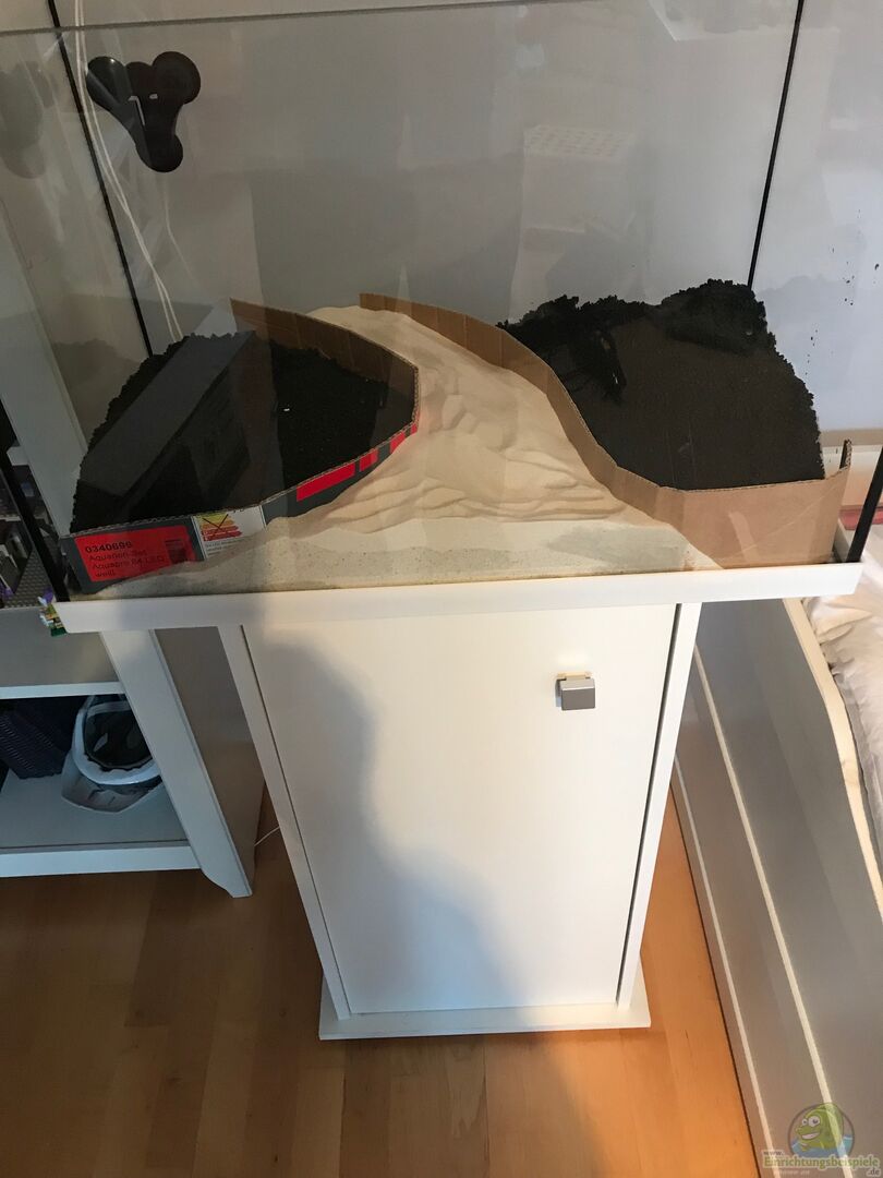 Fluter bzw. Fu??bodenheizung. Angesetzt wurde das Becken mit Wasser und Bakterien aus einem eingefahrenen Becken. Die Filterschwämme wurden 2 Wochen vorher bereits eingefahren. Trotzdem täglicher Wasserwechsel von ca. 15 l pro Tag für die ersten 2 Wochen geplant.