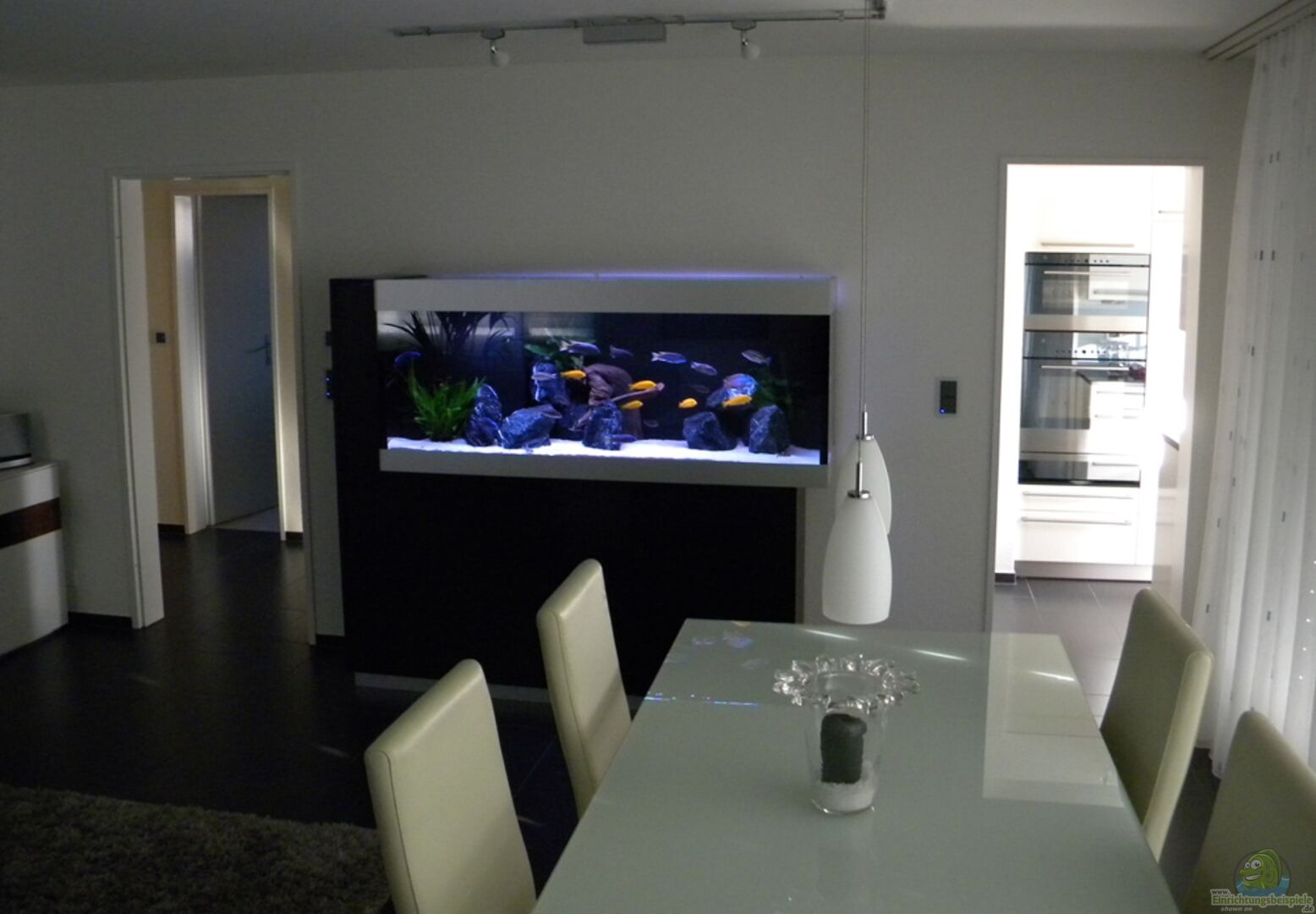 Details : Glasdicke : 10mm Sicherheitsverklebt (Stossverklebt) Abdeckung Aluminium 3-Teilig Rückwand innen liegend aus Forex (schwarz) Als erstes wurde in unserem Wohnzimmer der Fernseher abgebaut und die Wand neu gestrichen. Der Fernseher wurde somit in ein separates TV-Zimmer im Keller verbannt. Das Becken wurde durch www.fischetische.ch (Fessler Aquarium-Design) geplant, punktgenau geliefert und montiert. Solch ein auf die Bedürfnisse und Platzverhältnisse zugeschnittenes Becken [...]