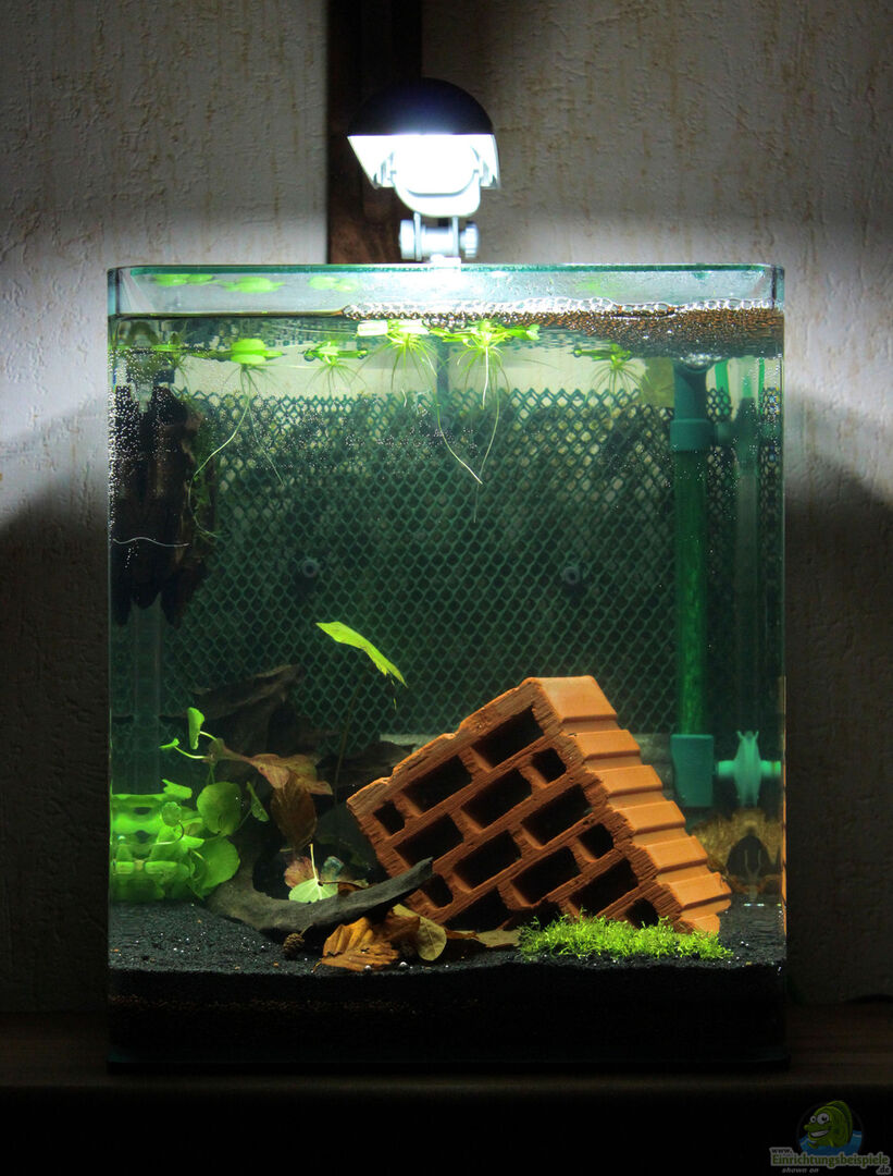 Moosrückwand Dazu habe ich 2 Moosgitter aufeinander gelegt, das Moos (Phönix Moos) dazwischen geklemmt, und anschlie??end die beiden Matten zusammengeschnürt. Befestigt ist es mit Saugnäpfen an der Aquarienscheibe.