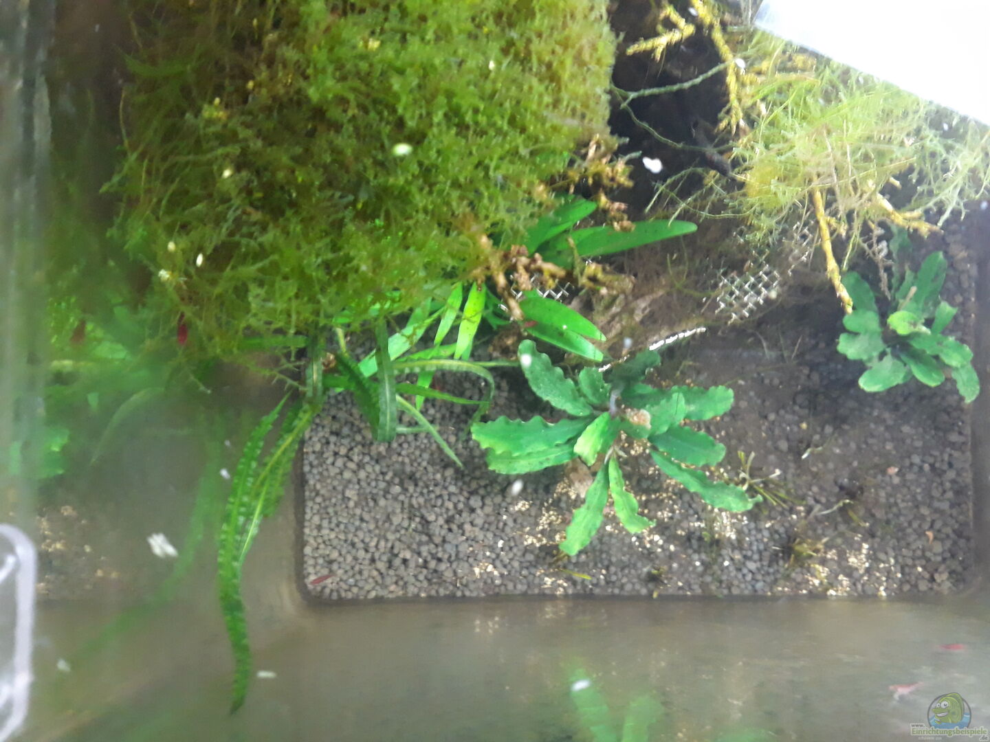 DENNERLE Nano Cube 30 Komplett-Set. Mit kleiner ??nderung: Anstelle der mitgelieferten schwarzen Rückwandfolie habe ich die Rückwand direkt schwarz lackiert, um möglichen Luft- und Wassereinschlüssen zwischen Folie und Scheibe (sieht immer recht unschön aus) vorzubeugen.