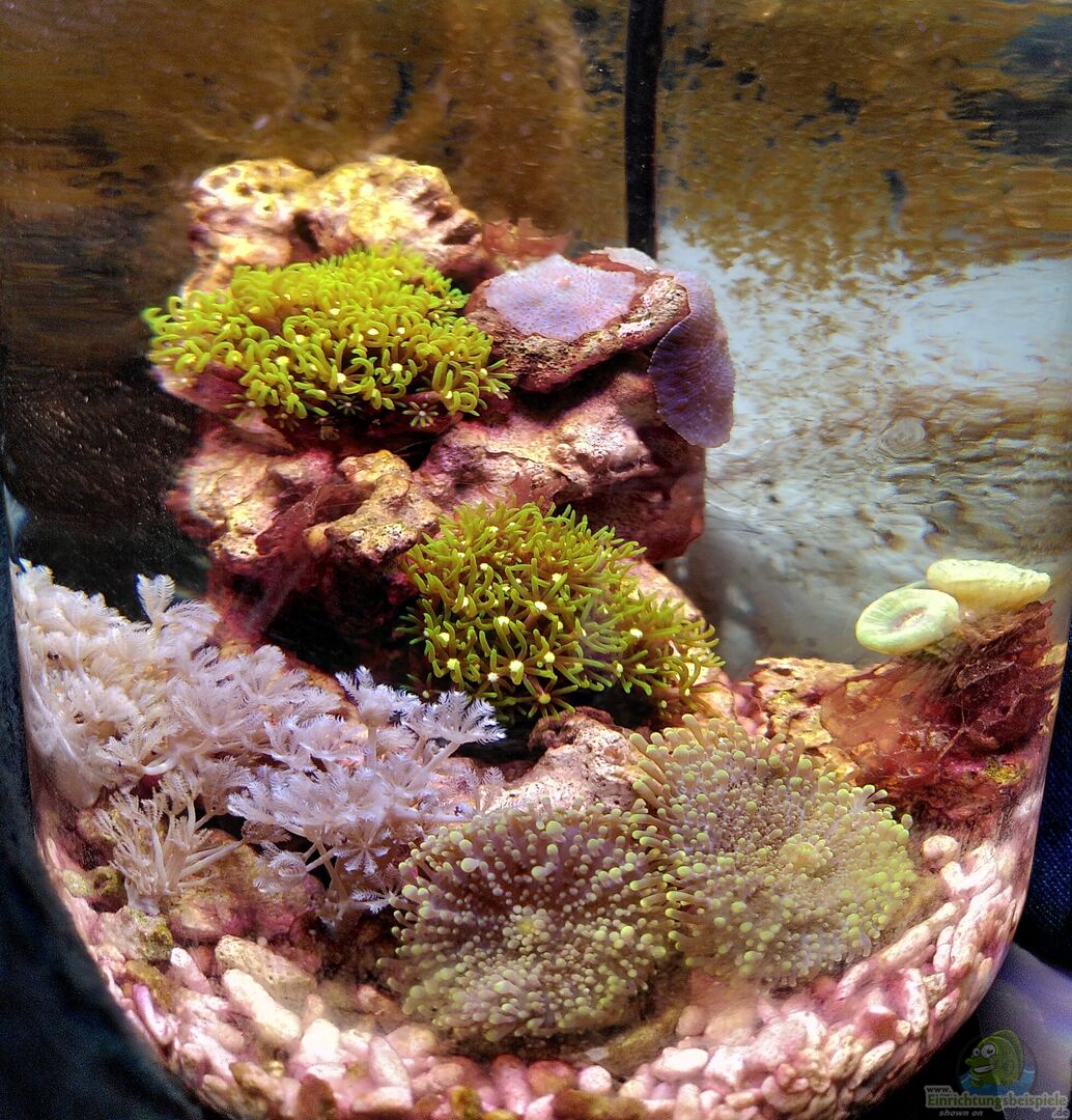 Ein Standard-Einmachglas als Nanoriff, steht im Büro auf dem Schreibtisch und sorgt für Entspannungsmomente im Arbeitsalltag