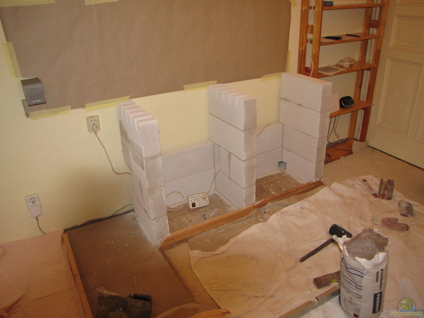Der Unterschrank ist komplett Eigenbau , Becken Verklebung vor Ort da Spezialanfertigung.Der Aquariumbauer bekommt es sonst nicht durchs Treppenhaus. So das Becken ist bestellt und kommt am 13.02.