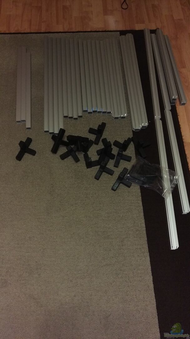 Das Becken wurde bei Aquarium Ennigerloh gefertigt. Die Glasstärke beträgt 10mm mit zwei längs- und einer Querstrebe. Die Seitenscheiben und die Rückscheibe wurde mit schwarzer Farbe gestrichen um einen Höhleneffekt zu ereichen. Als Unterschrank wurde ein Alugestell von Marine Systems in 160x60x70cm gewählt, dieser steht auf einer Siebdruckplatte um das Gewicht besser auf den Fussboden verteilen zu können. Zwischen Gestell und Becken liegt ebenfalls eine Siebdruckplatte. Eine Gummimatte [...]