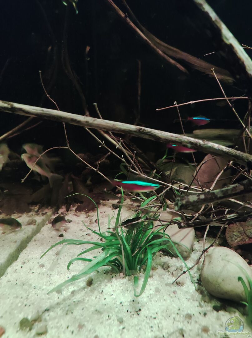 Dieses Becken soll ein kleiner Ausschnitt aus einem Nebenarm des Rio Negros (Uferbereich) darstellen. Ich habe versucht, dies so naturgetreu wie möglich nachzuarmen. Die Grundidee hinter der Aquariumeinrichtung war ein kleiner Nebenfluss am Ufer nachzustellen. Um diese Optik in meinem Aquarium zu kreieren, wurde besonders auf die Echtheit der Natur geachtet. Dafür bieten die zwei Wurzeln, die in das Aquarium ragen, einen zusätzlichen Schutz für die Fische während sie sich im Uferbereich aufhalten. [...]