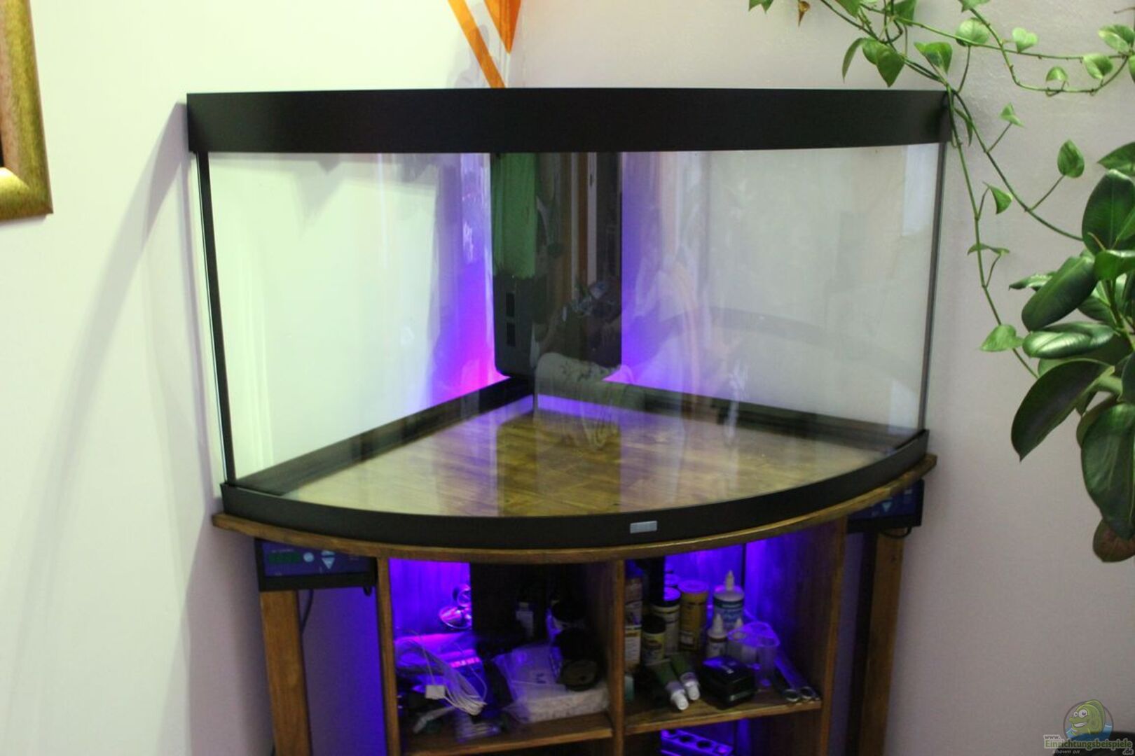 Der Unterschrank wurde selbst gemacht, die LED Beleuchtung umgerüstet. Einkaufsliste: Dennerle Duomat Deluxe inkl. JBL Bodenfluter 60W und Juwel Heizstab 300W im Becken integriert Dennerle Bodengrund Quazkies Schiefer grau Dennerle DepotMix inkl. FB1 Substrate Start Dennerle PH Control Deluxe inkl. Dennerle CO2 mit Magnetventil Juwel Strukturrückwand Schiefer grau Juwel Trigon schwarz Edelstahl UVC Klärer im Filter JBL Futterautomat aPump Nanoluftpumpe