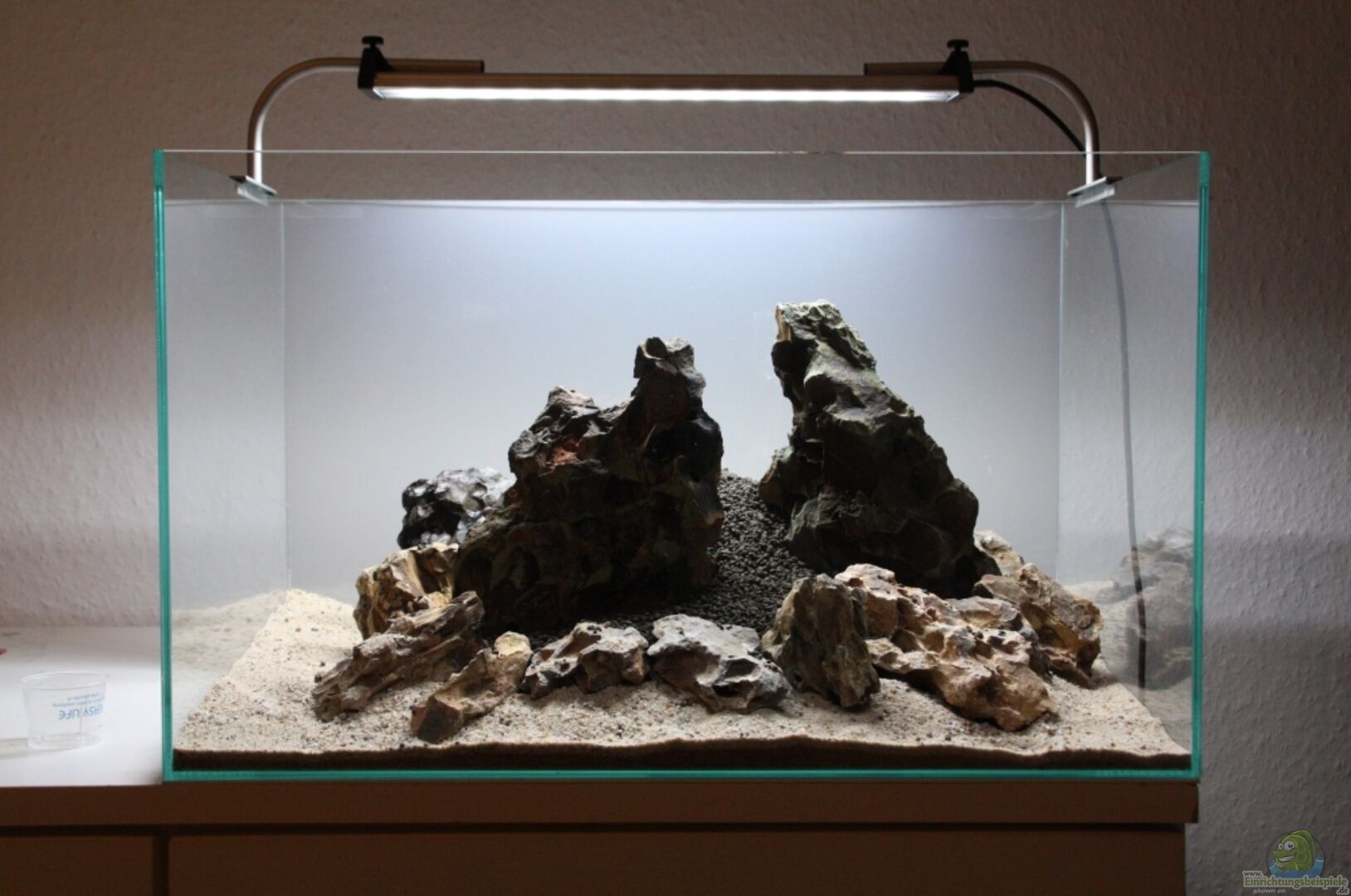 -ein sehr schönes, transparent verklebtes Poolaquarium (ohne Streben). Die Nähte sind nur hauchdünn verklebt. -Als Hintergrundfolie eine Milchglaslampenschirmfolie aus dem Bastelgeschäft. -Auf Empfehlung von Herrn Just hab ich statt Styropor nun eine wei??e Moosgummiplatte unter dem Becken. Hier gibt es eine detaillierte Fotostrecke zum Aufbau: