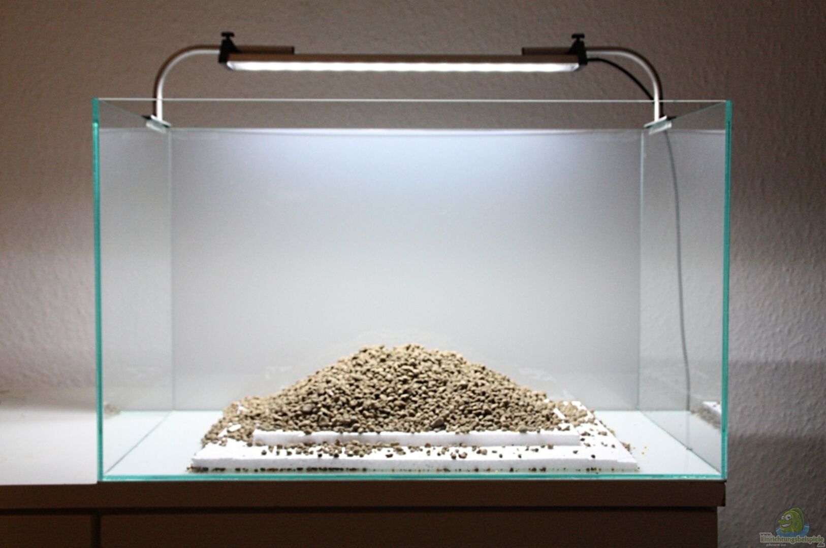 -ein sehr schönes, transparent verklebtes Poolaquarium (ohne Streben). Die Nähte sind nur hauchdünn verklebt. -Als Hintergrundfolie eine Milchglaslampenschirmfolie aus dem Bastelgeschäft. -Auf Empfehlung von Herrn Just hab ich statt Styropor nun eine wei??e Moosgummiplatte unter dem Becken. Hier gibt es eine detaillierte Fotostrecke zum Aufbau:
