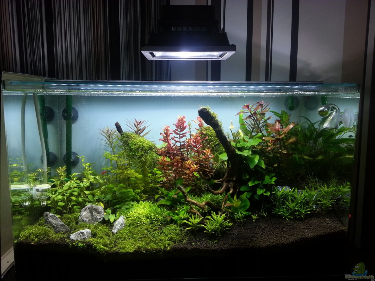 Das Becken ist von Blau und hat runde Kanten an der Frontscheibe. An die Rückseite hab ich eine matte Folie geklebt.