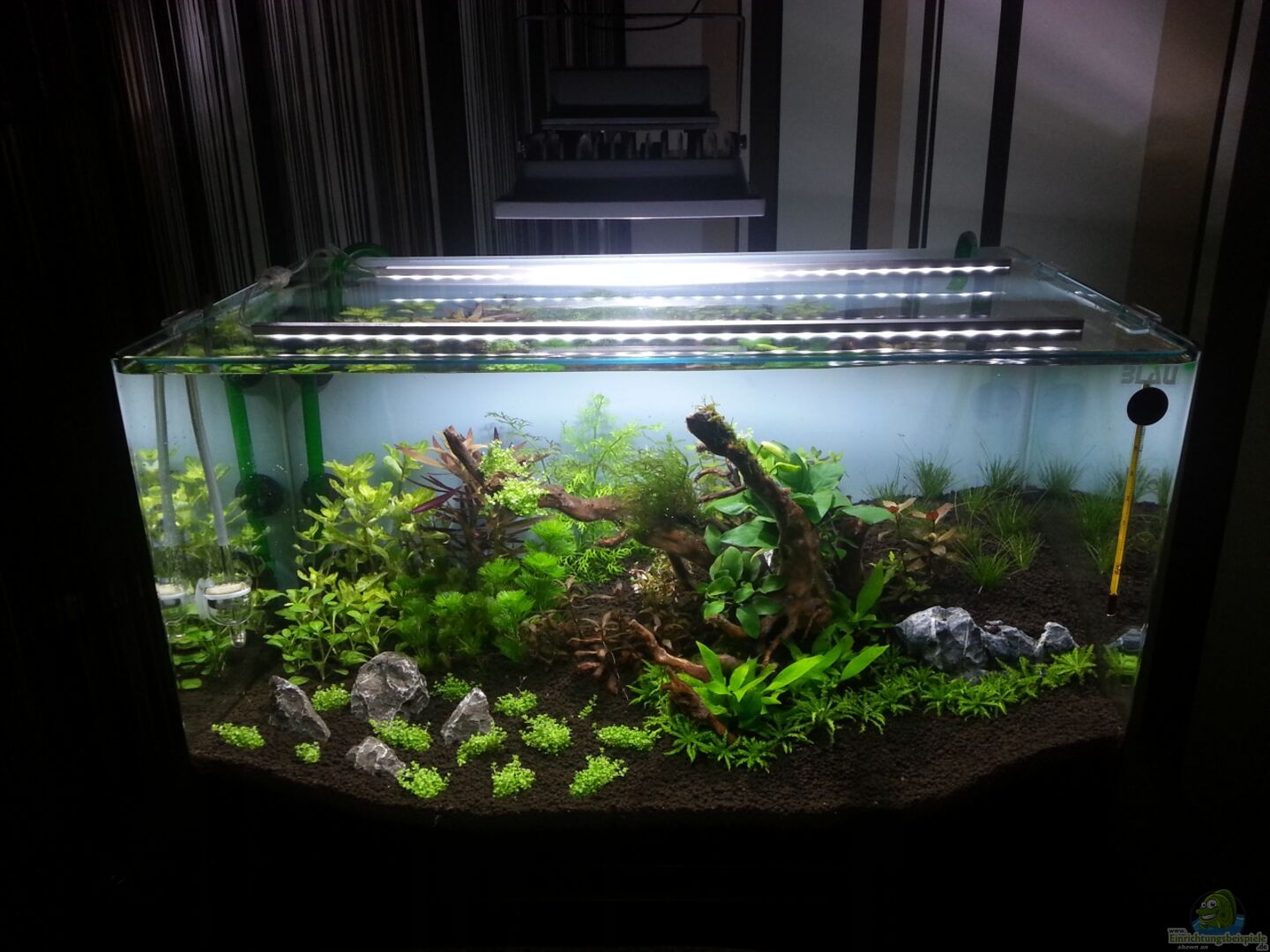 Das Becken ist von Blau und hat runde Kanten an der Frontscheibe. An die Rückseite hab ich eine matte Folie geklebt.
